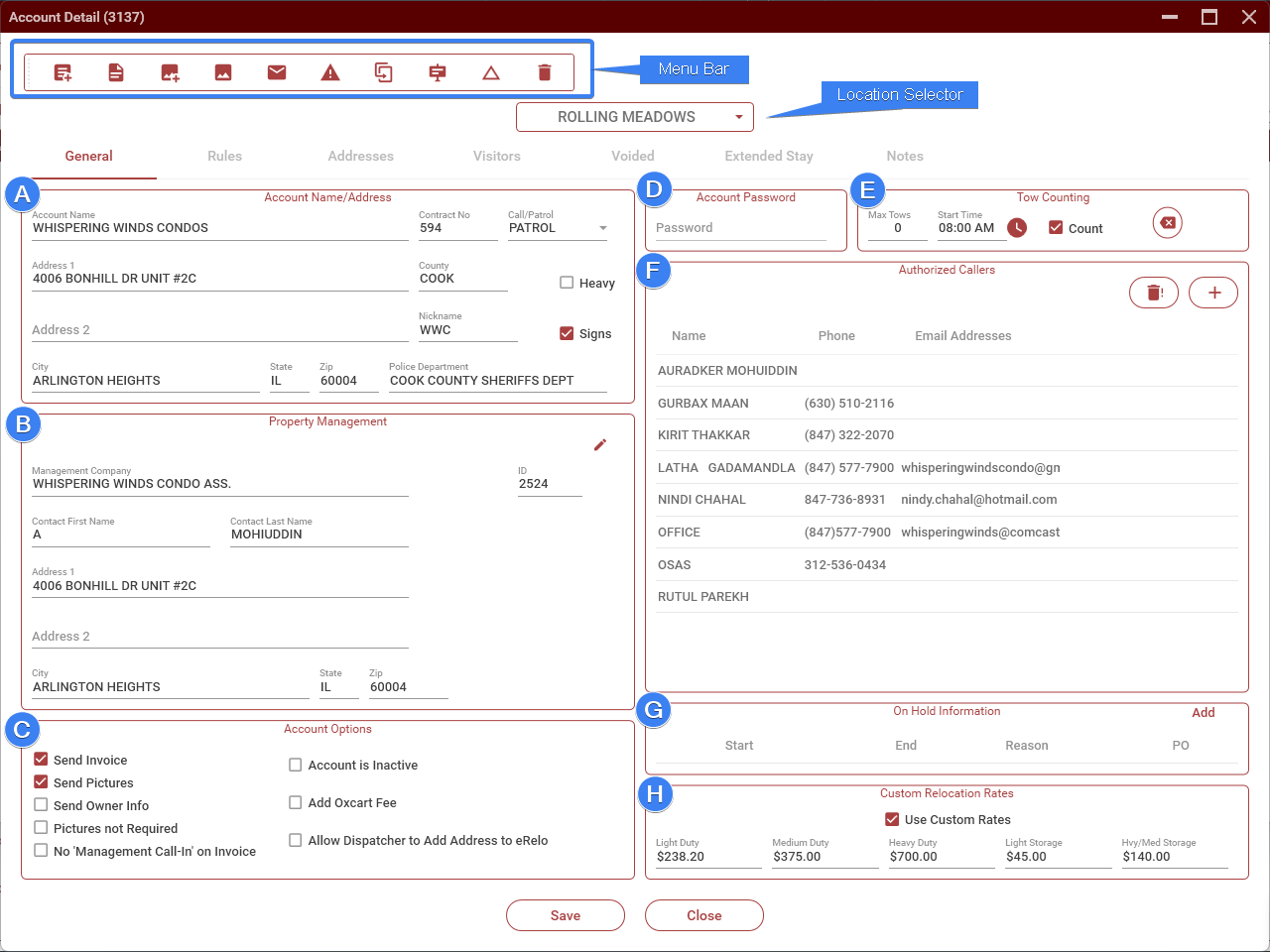 - No 'Management Call-In' on Invoice: When checked, will display 'No management call-in' under the reason for any tow for this account.