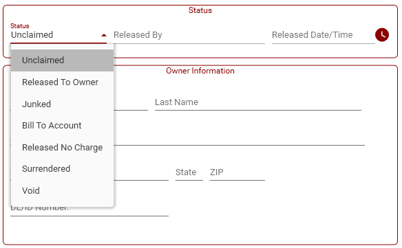 This status should not normally be selected from the tow detail screen. Junking vehicles are usually handled through Vehicle Processing.
