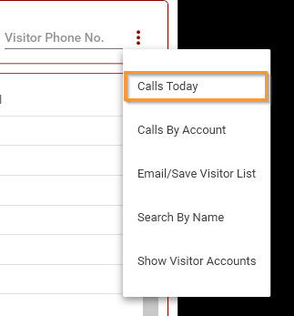 To view all visitor calls for the current day, select Calls Today from the Visitor Call-In Menu: