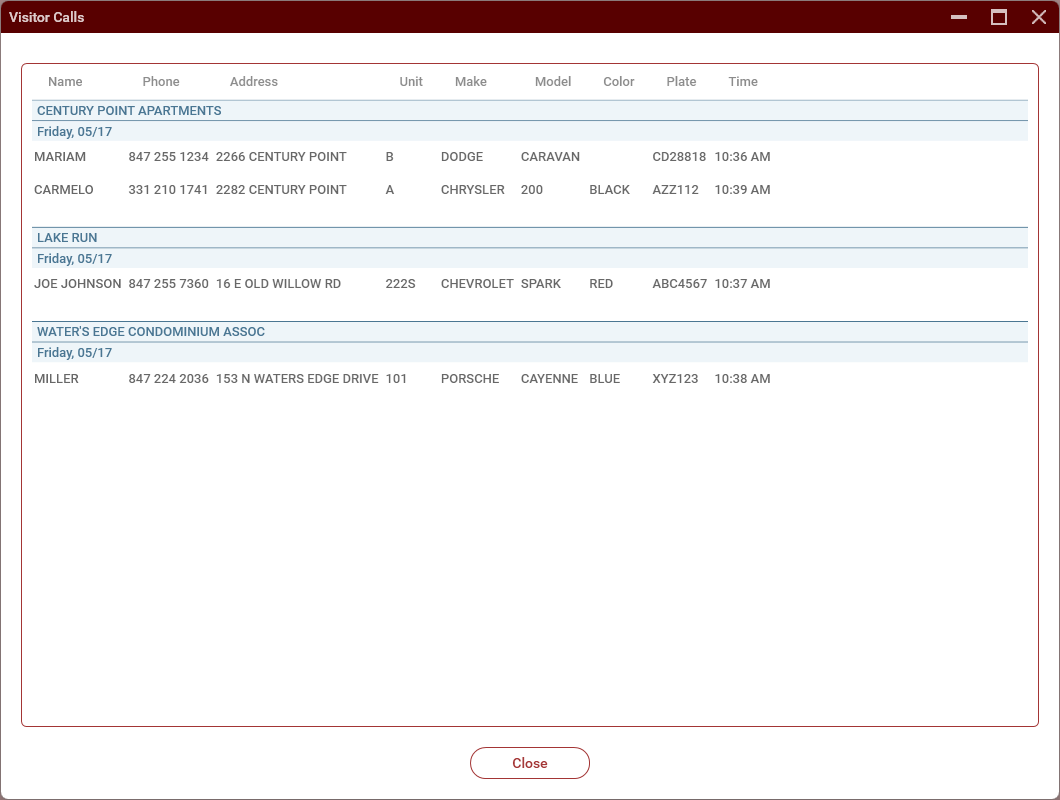 Clicking on a row will direct you to the Visitor Vehicles Screen for that resident, where you can make any necessary edits to the record.